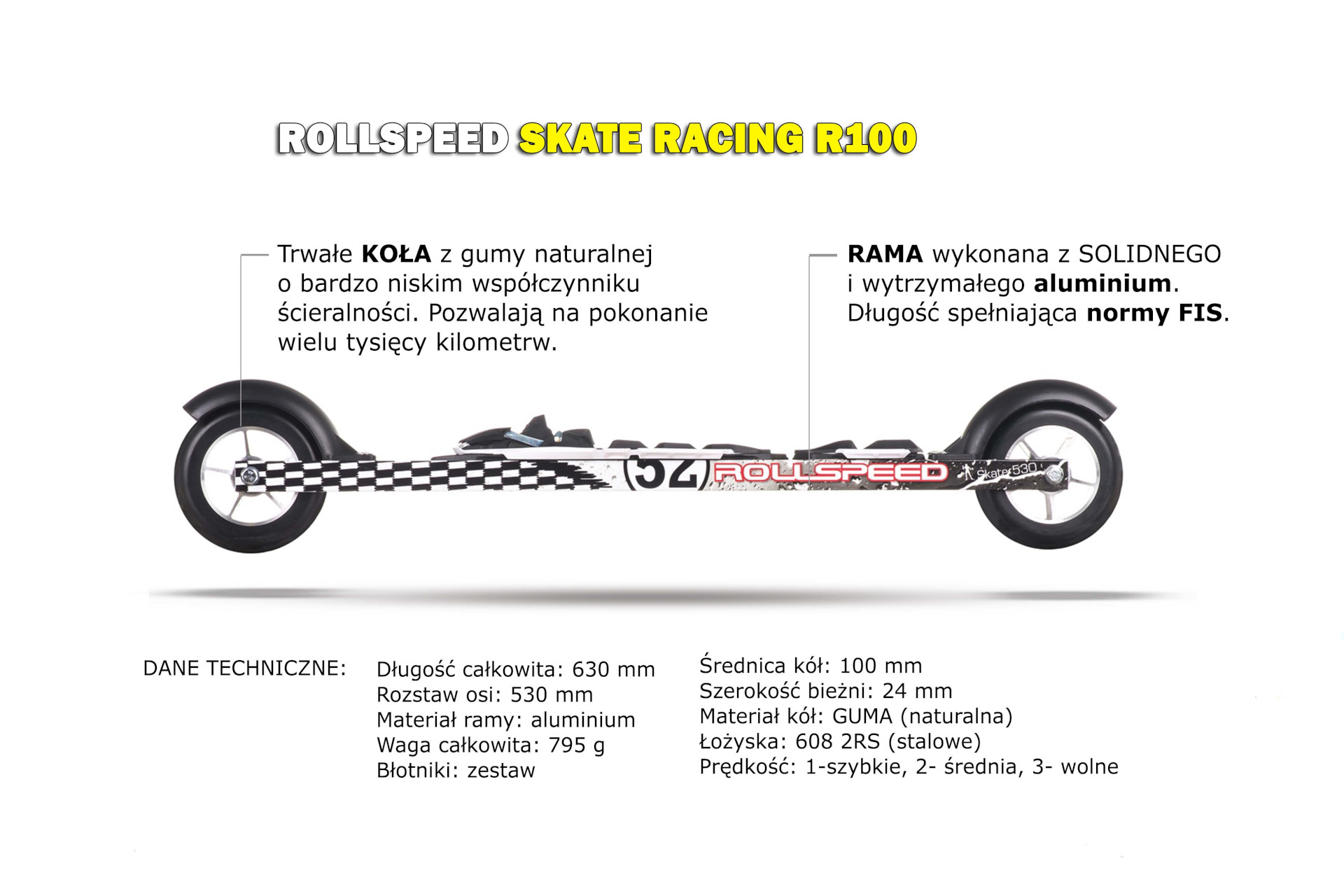 Nartorolki z ramą wykonaną z solidnego i wytrzymałego aluminium. Stosunkowo lekkie głównie z uwagi na  swoją długość, która spełnia normy FIS. Dedykowana  do uczestnictwa w zawodach. Wówczas zalecane koła 1-szybkie.